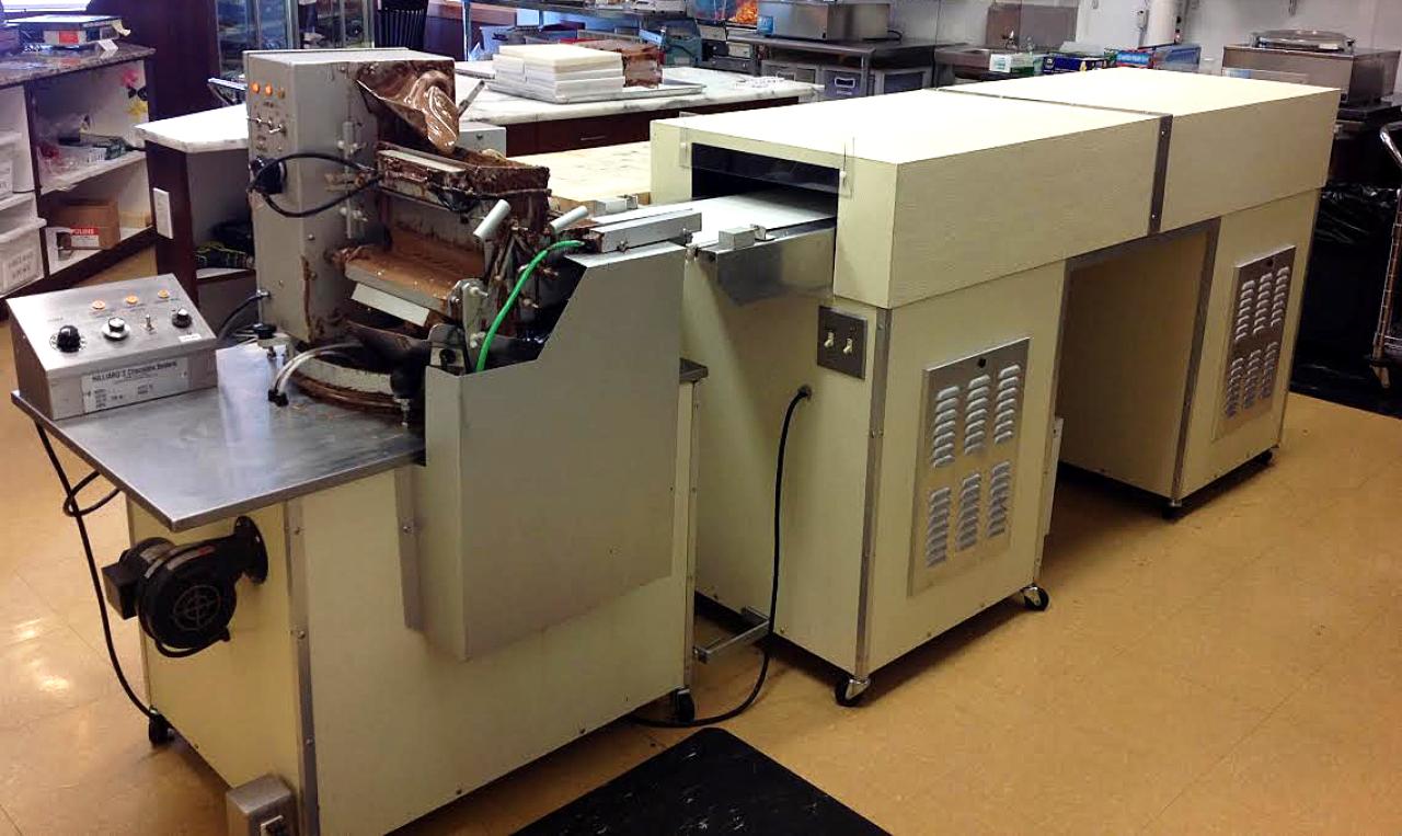 Hilliard 10" Compact Coater enrober with 240 lb per day tempering melter and 6 ft. cooling tunnel - $20,000.