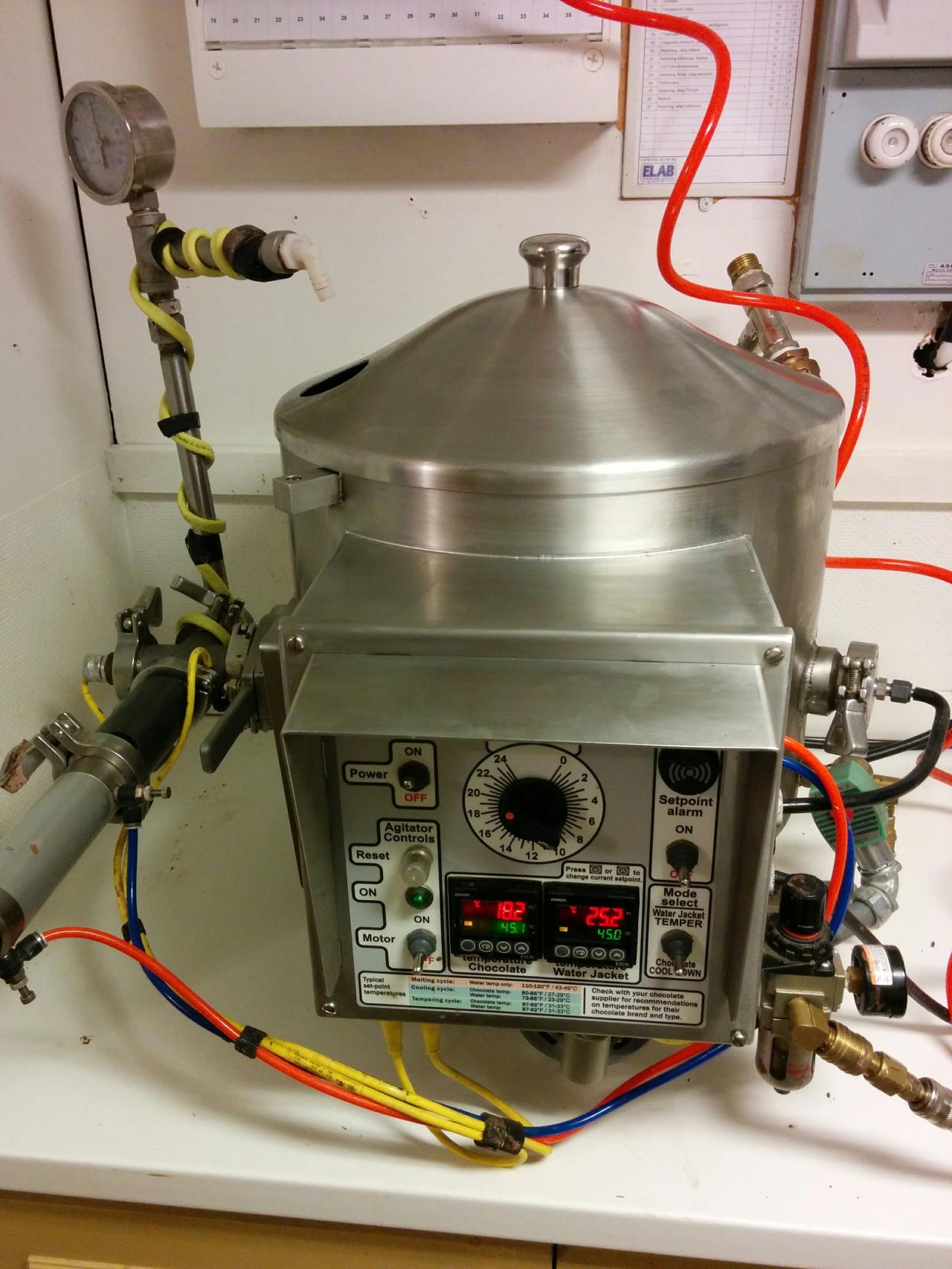 Two changes we made with the chocolate is that this time we winnowed the chocolate. This time we didn't use a blow dryer to melt the chocolate. Two improvements with the chocolate is that the melanger didn't get clogged this time and everyone put in work.