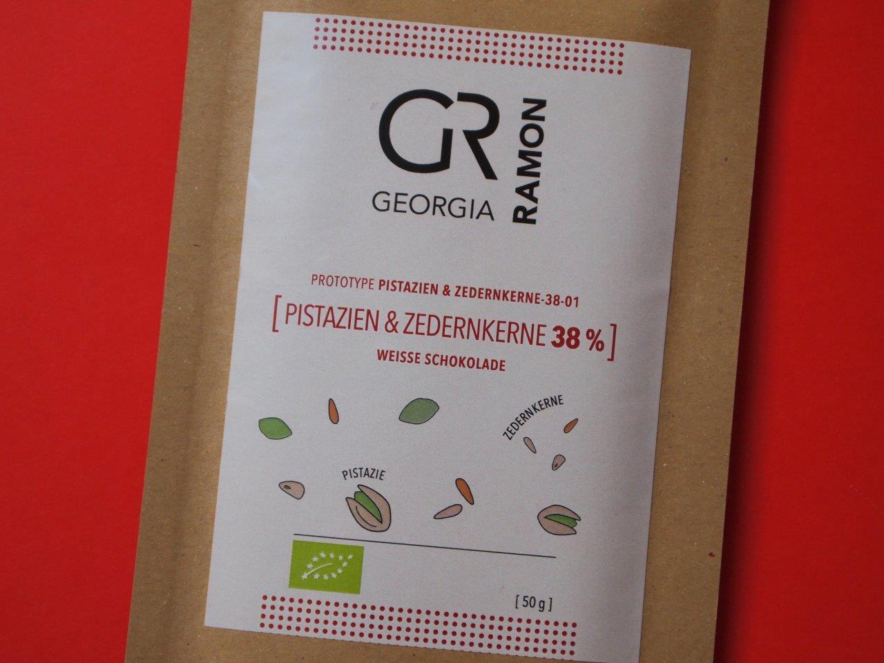 • Georgia Ramon White Chocolate 38% with Pistachios and Cedar Nuts